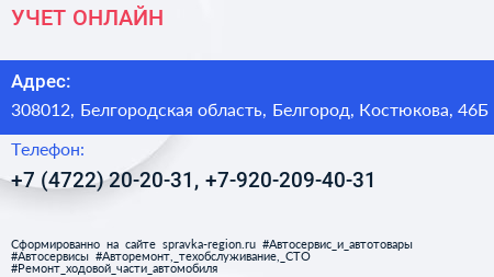 УЧЕТ ОНЛАЙН по адресу 308012, Белгородская область, Белгород, Костюкова, 46Б в дальнейшем Организация, размещена в следующих категориях:
