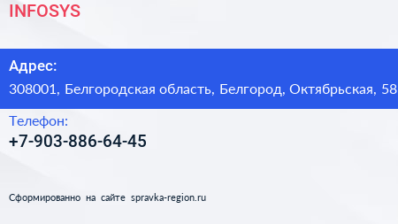 INFOSYS по адресу 308001, Белгородская область, Белгород, Октябрьская, 58 в дальнейшем Организация, размещена в следующих категориях: