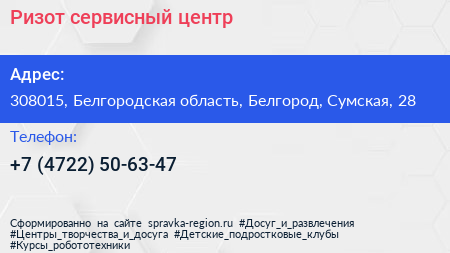 Ризот, сервисный центр по адресу 308015, Белгородская область, Белгород, Сумская, 28 в дальнейшем Организация, размещена в следующих категориях: