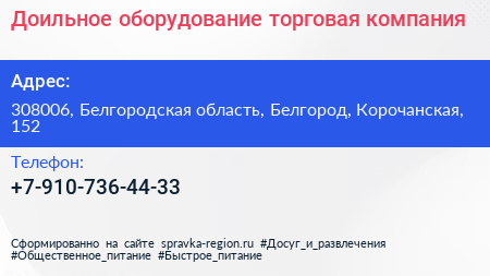 Доильное оборудование, торговая компания по адресу 308006, Белгородская область, Белгород, Корочанская, 152 в дальнейшем Организация, размещена в следующих категориях: