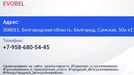 EVOBEL по адресу 308015, Белгородская область, Белгород, Сумская, 50а к1 в дальнейшем Организация, размещена в следующих категориях: