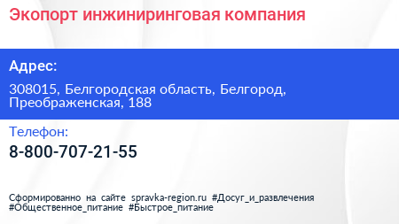 Экопорт, инжиниринговая компания по адресу 308015, Белгородская область, Белгород, Преображенская, 188 в дальнейшем Организация, размещена в следующих категориях: