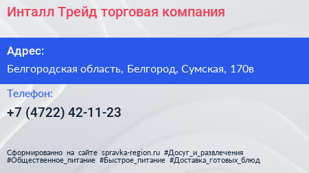 Инталл-Трейд, торговая компания по адресу Белгородская область, Белгород, Сумская, 170в в дальнейшем Организация, размещена в следующих категориях: