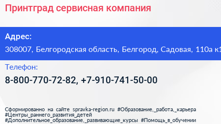 Принтград, сервисная компания по адресу 308007, Белгородская область, Белгород, Садовая, 110а к1 в дальнейшем Организация, размещена в следующих категориях: