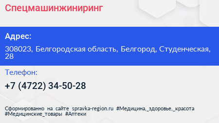 Спецмашинжиниринг по адресу 308023, Белгородская область, Белгород, Студенческая, 28 в дальнейшем Организация, размещена в следующих категориях:
