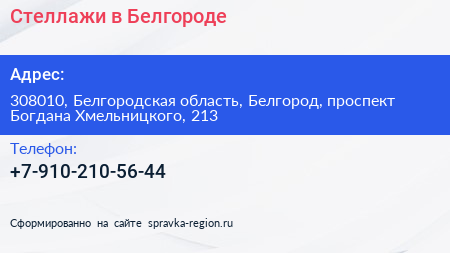 Стеллажи в Белгороде по адресу 308010, Белгородская область, Белгород, проспект Богдана Хмельницкого, 213 в дальнейшем Организация, размещена в следующих категориях: