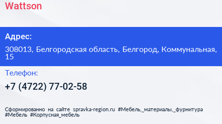 Wattson по адресу 308013, Белгородская область, Белгород, Коммунальная, 15 в дальнейшем Организация, размещена в следующих категориях: