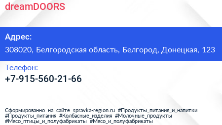 dreamDOORS по адресу 308020, Белгородская область, Белгород, Донецкая, 123 в дальнейшем Организация, размещена в следующих категориях: