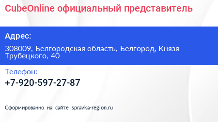 CubeOnline, официальный представитель по адресу 308009, Белгородская область, Белгород, Князя Трубецкого, 40 в дальнейшем Организация, размещена в следующих категориях: