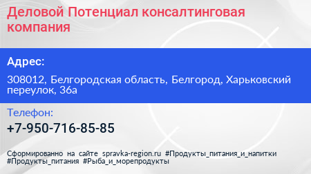 Деловой Потенциал, консалтинговая компания по адресу 308012, Белгородская область, Белгород, Харьковский переулок, 36а в дальнейшем Организация, размещена в следующих категориях: