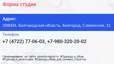Форма, студия по адресу 308004, Белгородская область, Белгород, Славянская, 11 в дальнейшем Организация, размещена в следующих категориях: