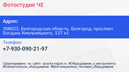 Фотостудия ЧЕ по адресу 308023, Белгородская область, Белгород, проспект Богдана Хмельницкого, 137 к1 в дальнейшем Организация, размещена в следующих категориях: