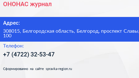 ОНОНАС, журнал по адресу 308015, Белгородская область, Белгород, проспект Славы, 100 в дальнейшем Организация, размещена в следующих категориях:
