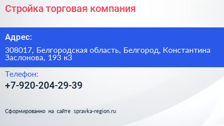Стройка, торговая компания по адресу 308017, Белгородская область, Белгород, Константина Заслонова, 193 к3 в дальнейшем Организация, размещена в следующих категориях: