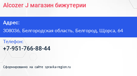 Alcozer & J, магазин бижутерии по адресу 308036, Белгородская область, Белгород, Щорса, 64 в дальнейшем Организация, размещена в следующих категориях: