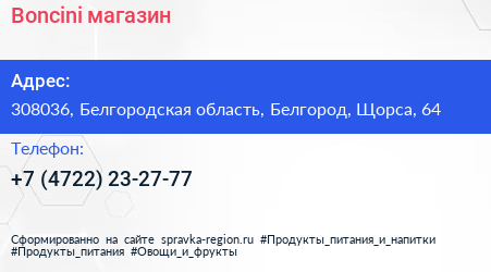 Boncini, магазин по адресу 308036, Белгородская область, Белгород, Щорса, 64 в дальнейшем Организация, размещена в следующих категориях:
