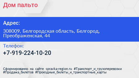 Дом пальто по адресу 308009, Белгородская область, Белгород, Преображенская, 44 в дальнейшем Организация, размещена в следующих категориях: