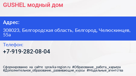 GUSHEL, модный дом по адресу 308023, Белгородская область, Белгород, Челюскинцев, 55а в дальнейшем Организация, размещена в следующих категориях: