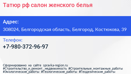 Татюр.рф, салон женского белья по адресу 308024, Белгородская область, Белгород, Костюкова, 39 в дальнейшем Организация, размещена в следующих категориях: