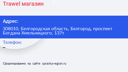 Trawel, магазин по адресу 308010, Белгородская область, Белгород, проспект Богдана Хмельницкого, 137т в дальнейшем Организация, размещена в следующих категориях: