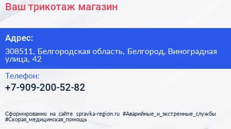 Ваш трикотаж, магазин по адресу 308511, Белгородская область, Белгород, Виноградная улица, 42 в дальнейшем Организация, размещена в следующих категориях: