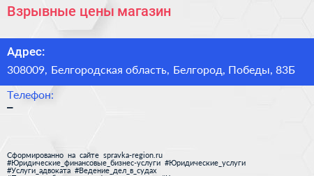 Взрывные цены, магазин по адресу 308009, Белгородская область, Белгород, Победы, 83Б в дальнейшем Организация, размещена в следующих категориях:
