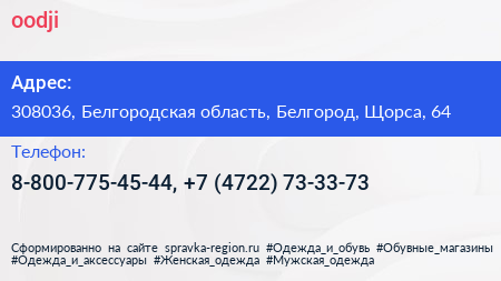 oodji по адресу 308036, Белгородская область, Белгород, Щорса, 64 в дальнейшем Организация, размещена в следующих категориях: