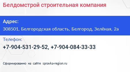Белдомстрой, строительная компания по адресу 308501, Белгородская область, Белгород, Зелёная, 2а в дальнейшем Организация, размещена в следующих категориях: