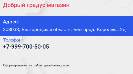 Добрый градус, магазин по адресу 308033, Белгородская область, Белгород, Королёва, 2д в дальнейшем Организация, размещена в следующих категориях: