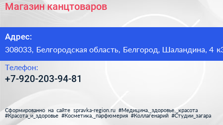 Магазин канцтоваров по адресу 308033, Белгородская область, Белгород, Шаландина, 4 к3 в дальнейшем Организация, размещена в следующих категориях: