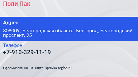 Поли Пак по адресу 308009, Белгородская область, Белгород, Белгородский проспект, 95 в дальнейшем Организация, размещена в следующих категориях: