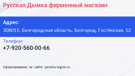 Русская Дымка, фирменный магазин по адресу 308015, Белгородская область, Белгород, Гостёнская, 12 в дальнейшем Организация, размещена в следующих категориях: