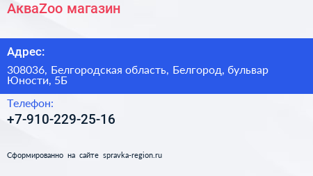 АкваZоо, магазин по адресу 308036, Белгородская область, Белгород, бульвар Юности, 5Б в дальнейшем Организация, размещена в следующих категориях: