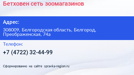 Бетховен, сеть зоомагазинов по адресу 308009, Белгородская область, Белгород, Преображенская, 74а в дальнейшем Организация, размещена в следующих категориях: