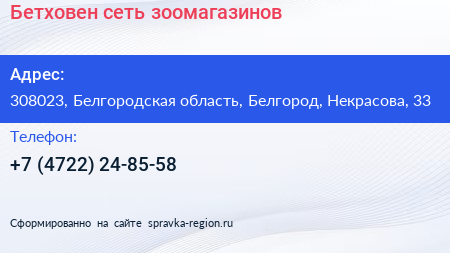 Бетховен, сеть зоомагазинов по адресу 308023, Белгородская область, Белгород, Некрасова, 33 в дальнейшем Организация, размещена в следующих категориях:
