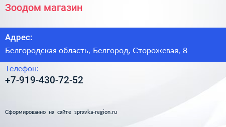 Зоодом, магазин по адресу Белгородская область, Белгород, Сторожевая, 8 в дальнейшем Организация, размещена в следующих категориях: