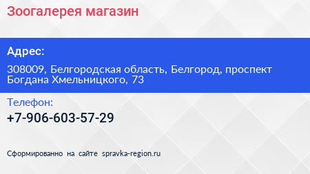 Зоогалерея, магазин по адресу 308009, Белгородская область, Белгород, проспект Богдана Хмельницкого, 73 в дальнейшем Организация, размещена в следующих категориях: