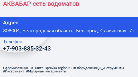 АКВАБАР, сеть водоматов по адресу 308004, Белгородская область, Белгород, Славянская, 7т в дальнейшем Организация, размещена в следующих категориях: