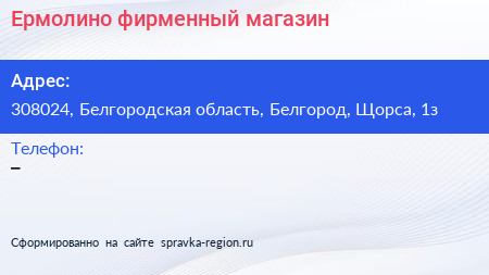 Ермолино, фирменный магазин по адресу 308024, Белгородская область, Белгород, Щорса, 1з в дальнейшем Организация, размещена в следующих категориях: