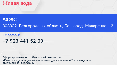 Живая вода по адресу 308029, Белгородская область, Белгород, Макаренко, 42 в дальнейшем Организация, размещена в следующих категориях: