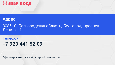 Живая вода по адресу 308510, Белгородская область, Белгород, проспект Ленина, 4 в дальнейшем Организация, размещена в следующих категориях: