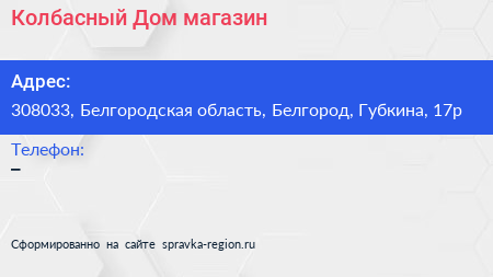 Колбасный Дом, магазин по адресу 308033, Белгородская область, Белгород, Губкина, 17р в дальнейшем Организация, размещена в следующих категориях: