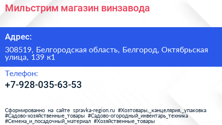 Мильстрим, магазин винзавода по адресу 308519, Белгородская область, Белгород, Октябрьская улица, 139 к1 в дальнейшем Организация, размещена в следующих категориях: