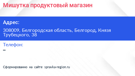 Мишутка, продуктовый магазин по адресу 308009, Белгородская область, Белгород, Князя Трубецкого, 38 в дальнейшем Организация, размещена в следующих категориях: