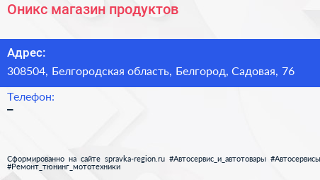 Оникс, магазин продуктов по адресу 308504, Белгородская область, Белгород, Садовая, 76 в дальнейшем Организация, размещена в следующих категориях: