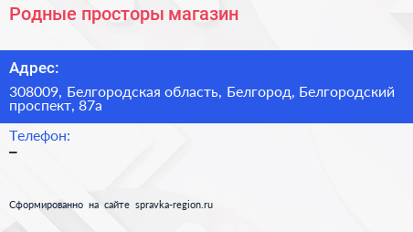 Родные просторы, магазин по адресу 308009, Белгородская область, Белгород, Белгородский проспект, 87а в дальнейшем Организация, размещена в следующих категориях: