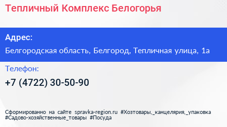 Тепличный Комплекс Белогорья по адресу Белгородская область, Белгород, Тепличная улица, 1а в дальнейшем Организация, размещена в следующих категориях: