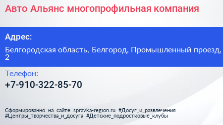 Авто-Альянс, многопрофильная компания по адресу Белгородская область, Белгород, Промышленный проезд, 2 в дальнейшем Организация, размещена в следующих категориях: