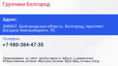 Грузчики Белгород по адресу 308007, Белгородская область, Белгород, проспект Богдана Хмельницкого, 92 в дальнейшем Организация, размещена в следующих категориях: