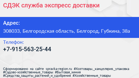СДЭК, служба экспресс-доставки по адресу 308033, Белгородская область, Белгород, Губкина, 38а в дальнейшем Организация, размещена в следующих категориях: